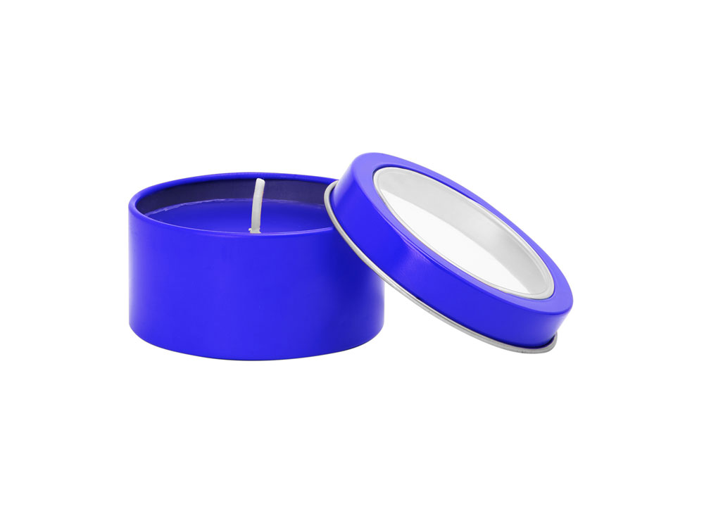 Ароматическая свеча с запахом ванили в металлическом круглом подсвечнике с крышкой с прозрачным окошком. Цвет свечи в тон подсвечника. белый фитиль