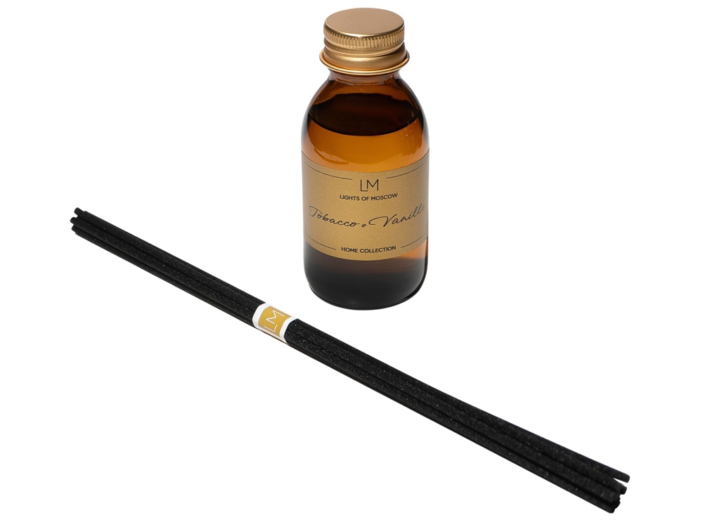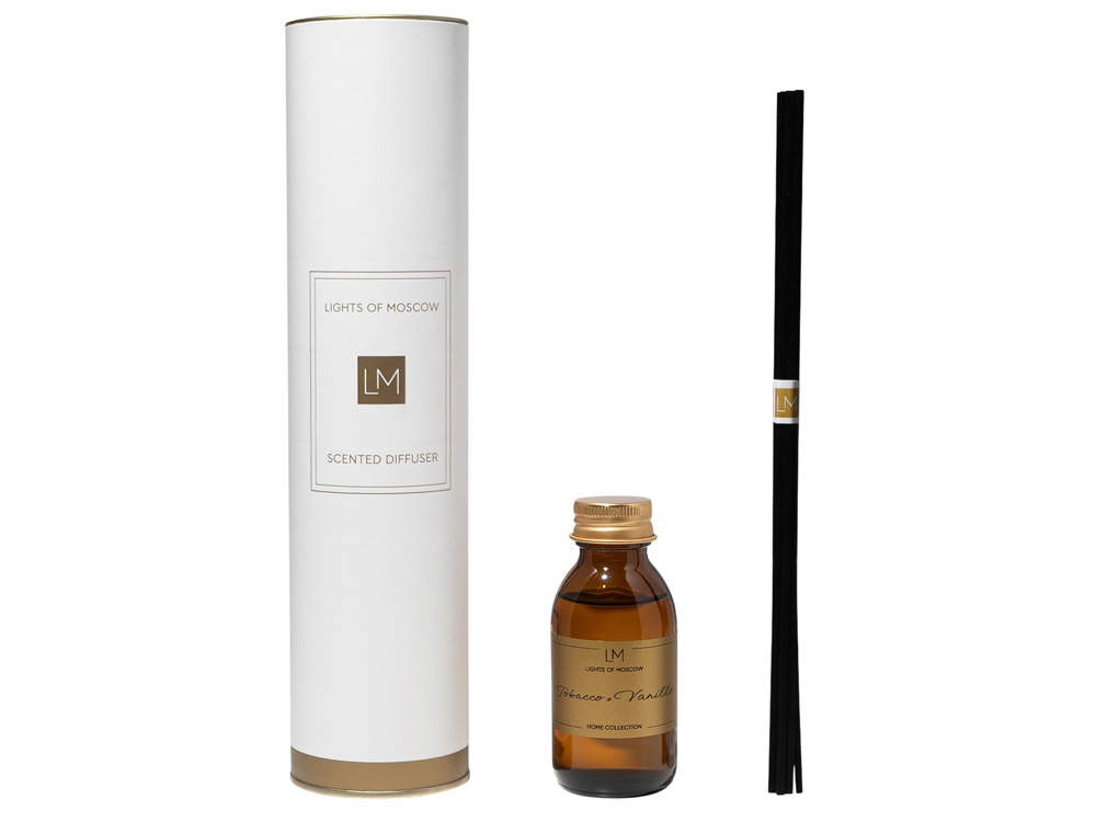 Диффузоры - это простое, изящное и долговременное решение, как наполнить пространство приятным ароматом. Для аромадиффузоров Lights of Moscow используем премиальные ароматизаторы из Европы и США, экологичную базу, фибровые палочки и качественную тару. В верхнем аккорде сдержанная композиция раскрывается дымно-пряными оттенками табачных листьев и мягким притягательным теплом восточных специй. Постепенно в композиции начинает доминировать ваниль, смешивающаяся с запахом бархатистого какао, дымно-сливочными тонами бобов тонка и шелковисто-пряным ароматом цветов табака. Тогда как в финале композиции звучит сладковато-дымный запах сухофруктов, сдобренных тёплыми и сладковатыми древесными нотами, создавая ощущение спокойствия, гармонии с окружающим миром, силы и уверенности в себе. Верхние ноты: лист табака, пряности Средние ноты: ваниль, какао, бобы тонка, цветок табака Базовые ноты: сухофрукты, древесные ноты Комплектность: - Подарочный брендированный тубус - 1 шт. - Колба янтарная стеклянная с жидкостью - 1 шт. - Фибровые палочки, запечатанные фтрменной наклейкой LM - 7 шт. - Инструкция - 1 шт. - Открытка - 1 шт. - Упаковочная бумага - 1 шт. Условия хранения: — Свечи, аромасаше, аромадиффузоры, SPA-наборы следует хранить при температуре +18…+24 °C, вдали от источников тепла, сквозняков и прямых солнечных лучей. — Рекомендуемая влажность — не более 50%. — Избегайте длительного воздействия яркого света.