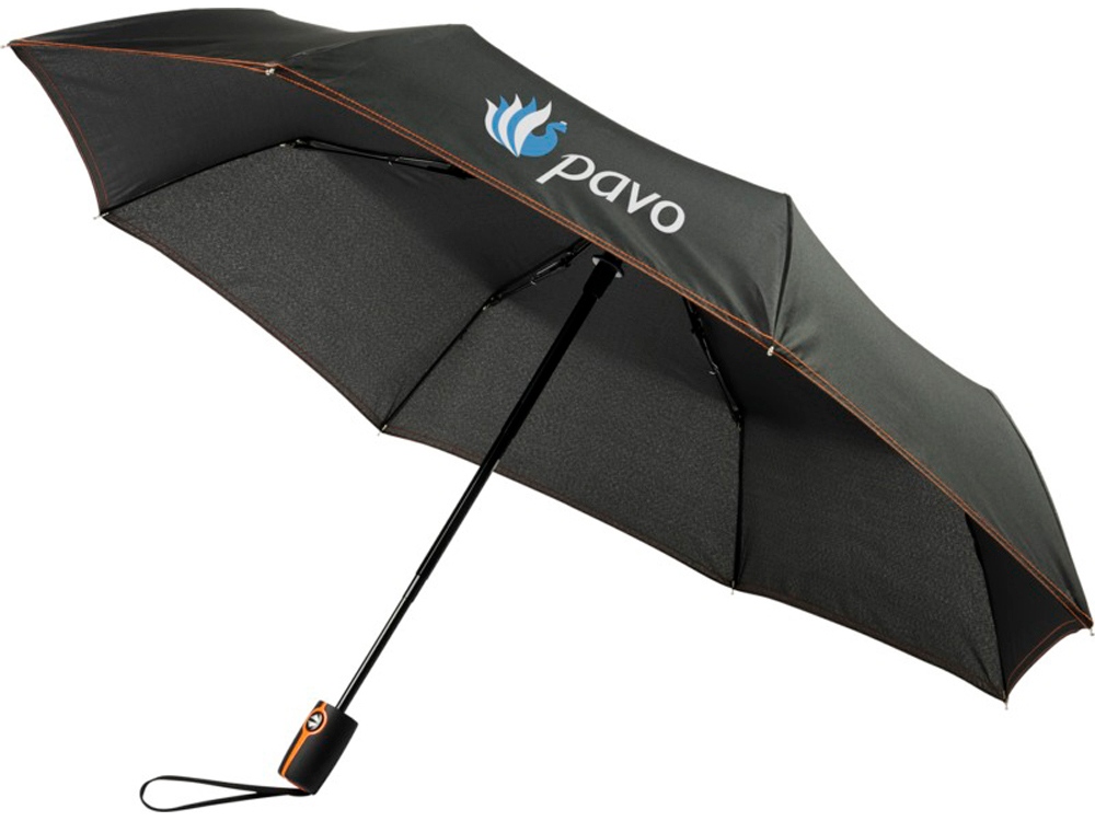 Автоматический складной зонт Stark-mini, черный/оранжевый купить оптом и в розницу с нанесением логотипа в Уфе