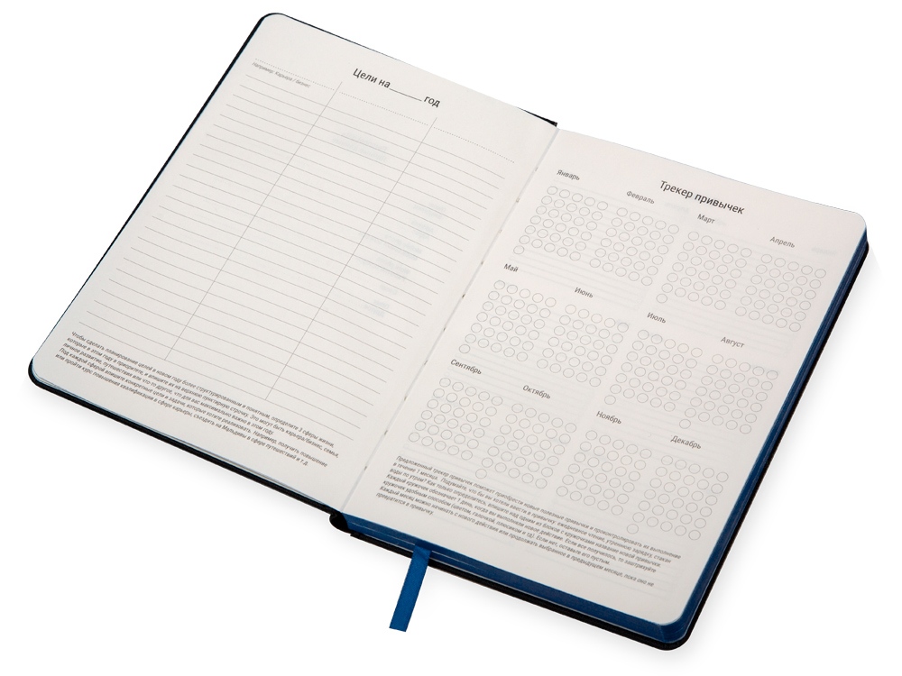 Бизнес-блокнот Bossy станет вашим ежедневным помощником не только в работе, но и в достижении личных целей. Информационный блок включает в себя страницы под цели и планы, трекер привычек — необходимые инструменты, которые не дадут ничего упустить из виду, а также отдельные страницы для подведения личных итогов года. В блокноте 256 страниц, даты не указаны, что позволяет начать вести блокнот в любой удобный день года. Карман для мелочей, резинки, петли для ручки на корешке и ляссе делают этот блокнот очень удобным и позволяют найти нужный раздел максимально быстро. Обложка выполнена из текстурной экокожи, цветной срез и фурнитура в тон делают Bossy очень стильным бизнес-аксессуаром. Корешок из экокожи с софт-тач покрытием очень приятен на ощупь. Бумага в Bossy гладкая, приятная на ощупь, писать на ней — одно удовольствие, а еще она произведена с заботой об экологии — имеет сертификат FSC. • 256 страниц в блоке, недатированный • Карман для мелочей на нахзаце • Наличие резинки, петли для ручки на корешке и ляссе • Специальные страницы для целей, записи идей, трекер привычек • Текстурная обложка • Наличие контрастных элементов