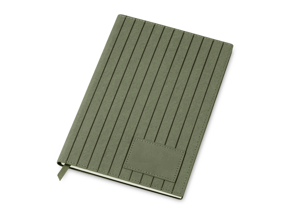 Необычный офисный блокнот станет прекрасным деловым мерчем. Гибкая текстурная обложка позволяет выполнить нанесение в двух вариантах - на самой обложке и на однотонном патче в правом нижнем углу. Внутри блокнота 80 листов кремовой бумаги повышенной плотности 80 г/м2 с FSC сертификатом.. Линовка основного блока в линейку, в конце по 4 страницы в клетку, в точку и нелинованные + 1 страница с линейкой. - ляссе в тон обложки; - формат А5; - бумага с сертификатом ответственного лесопользования FSC.