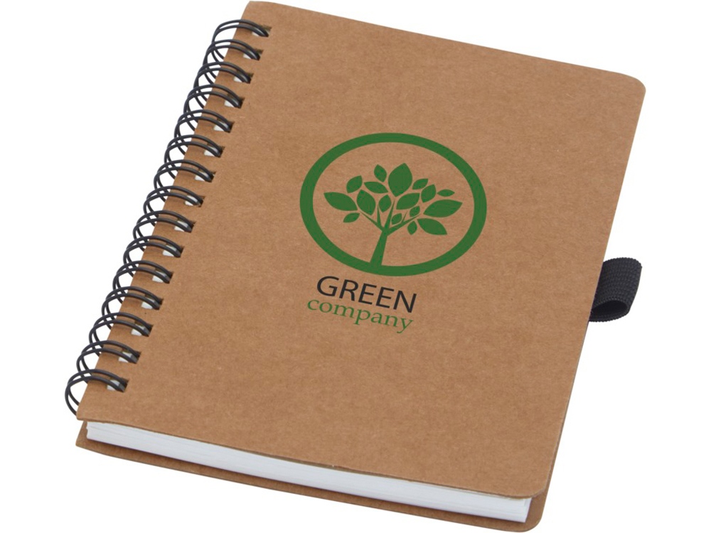 Блокнот на пружине формата A6, изготовленный из переработанного картона, с петлей для ручки. Содержит 70 листов в линию плотностью 60 г/м², изготовленных из каменной бумаги. В производстве каменной бумаги не используется дерево, а на сам процесс изготовления затрачивается гораздо меньше энергии в сравнении с производством переработанной или целлюлозной бумаги. Бумага водонепроницаемая и стойкая на разрыв. Имеет естественный белый цвет (без отбеливания).