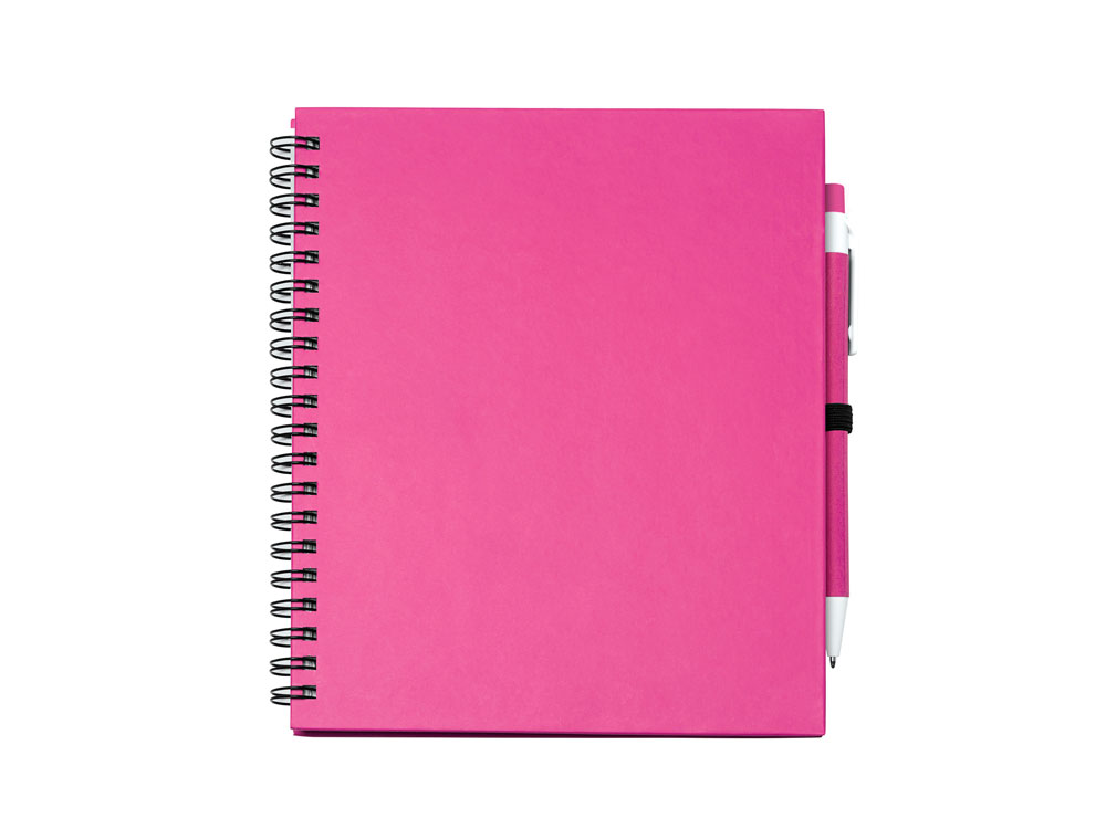 Блокнот на спирали с простыми листами и держателем для ручек. Твердая обложка и ручка из переработанного картона. 70 листов.
