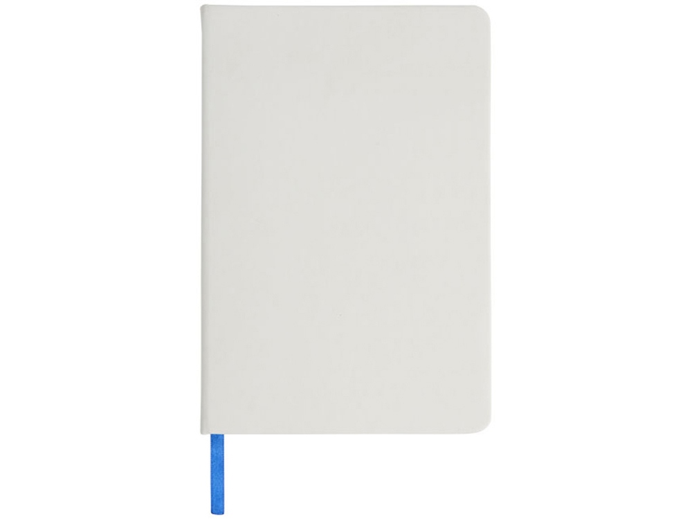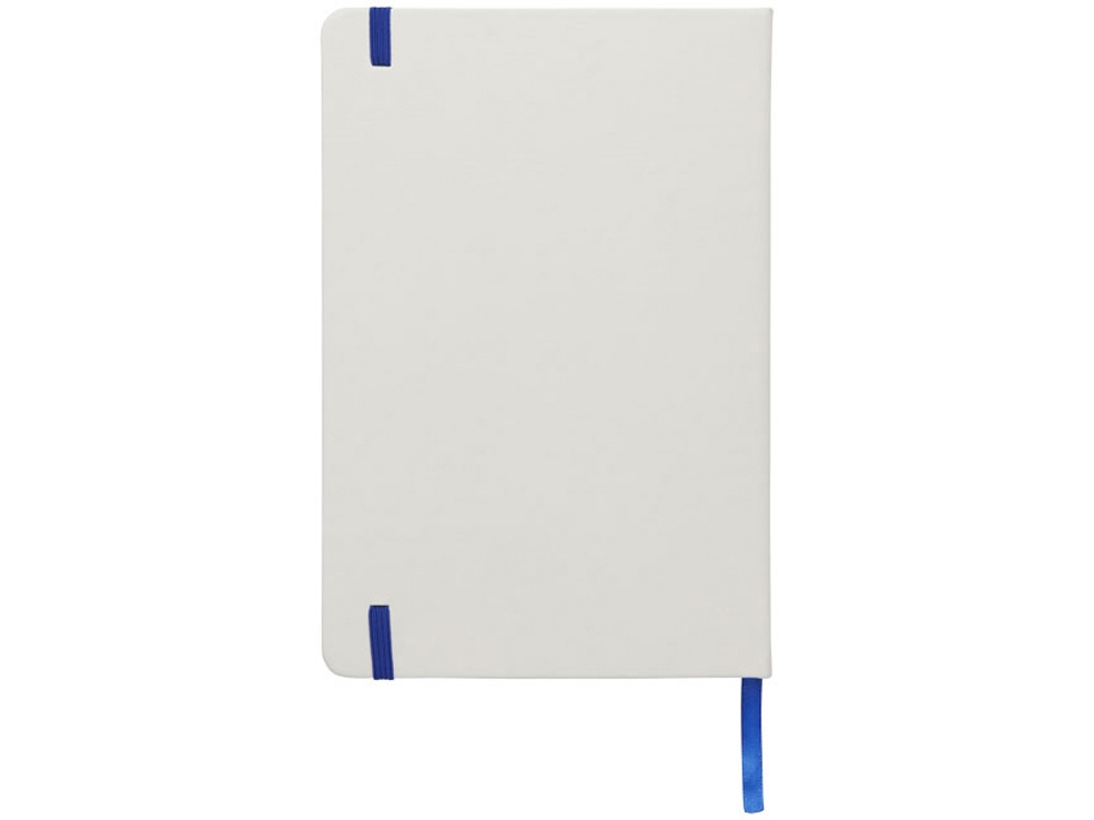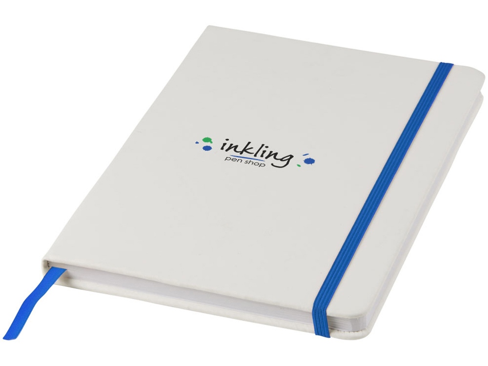Белый блокнот A5 с цветной эластичной закладкой и резинкой. 96 страниц (60g/m2), линованная бумага. На обложке возможна цифровая печать.