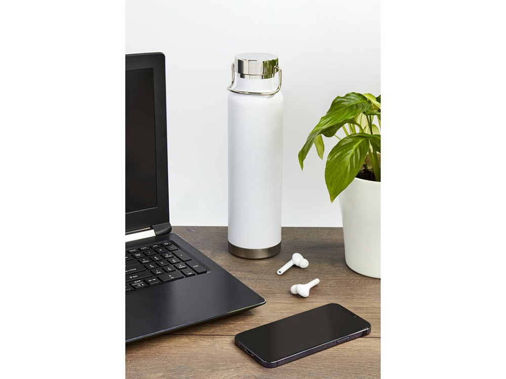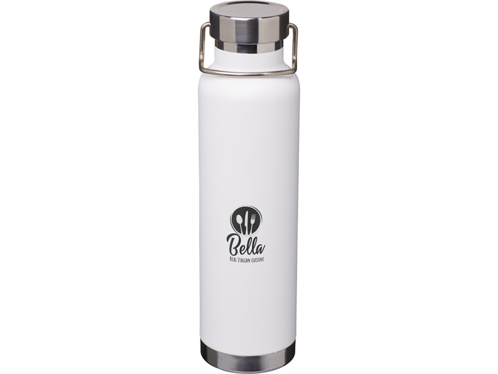 Бутылка для воды с вакуумной изоляцией Thor объемом 650 мл из переработанной нержавеющей стали, сертифицированной по стандарту RCS - Белый купить оптом и в розницу с нанесением логотипа в Уфе