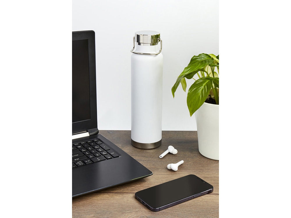 Бутылка из переработанной нержавеющей стали с двойными стенками и медной вакуумной изоляцией, сертифицированная по стандарту RCS. Оснащена завинчивающейся крышкой из переработанной нержавеющей стали с прочной петлей для руки из нержавеющей стали. Широкое горлышко для комфортного наполнения и заливки. Объем: 650 мл.