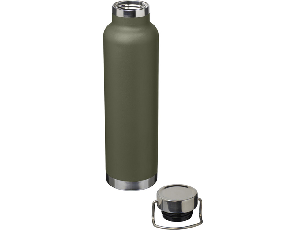 Бутылка для воды с вакуумной изоляцией Thor объемом 650 мл из переработанной нержавеющей стали, сертифицированной по стандарту RCS - Зеленый лесной купить оптом и в розницу с нанесением логотипа в Уфе