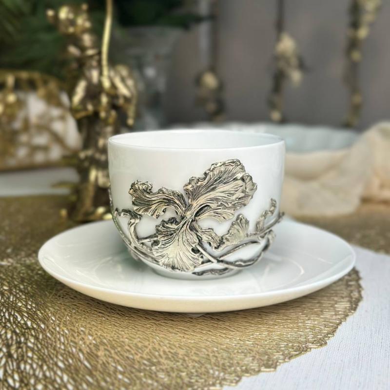 • Чашка и блюдце из белоснежного фарфора