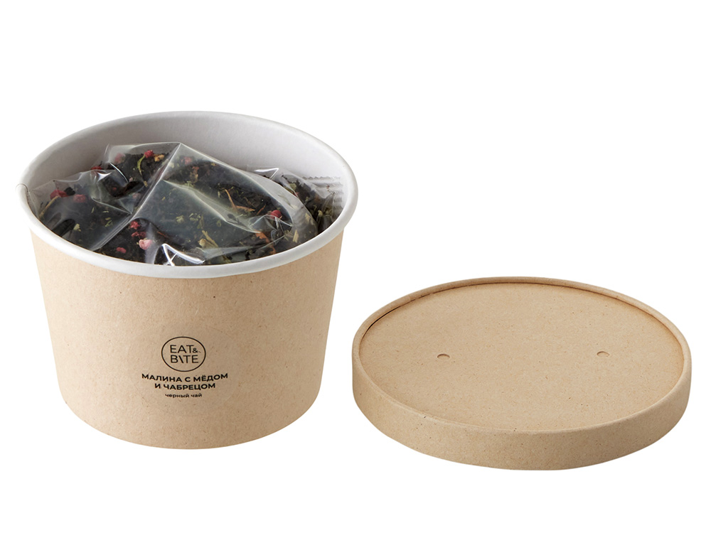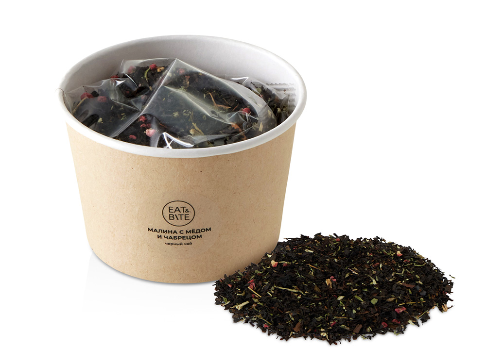 Чай черный Малина с медом и чабрецом в картонном стаканчике, 50 гр. купить оптом и в розницу с нанесением логотипа в Уфе
