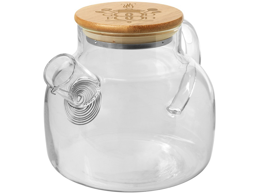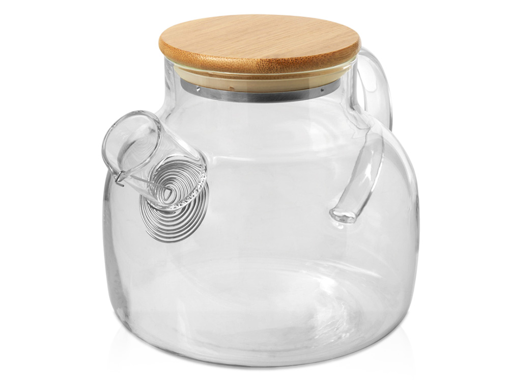 Чайник Zen с ситечком и бамбуковой крышкой - Прозрачный купить оптом и в розницу с нанесением логотипа в Уфе