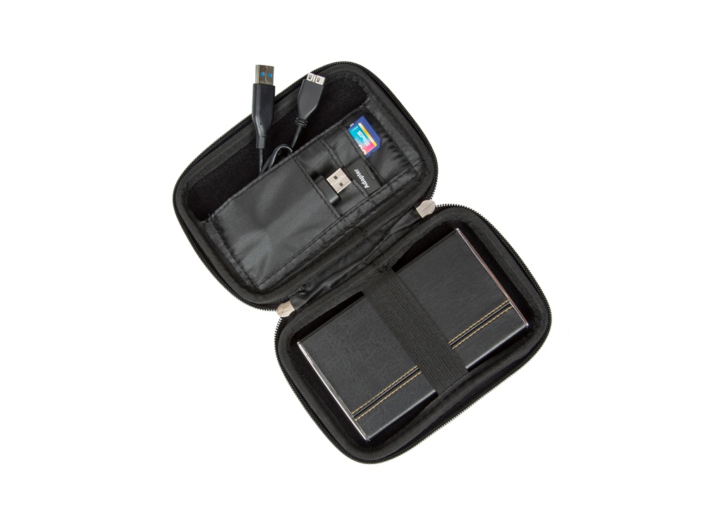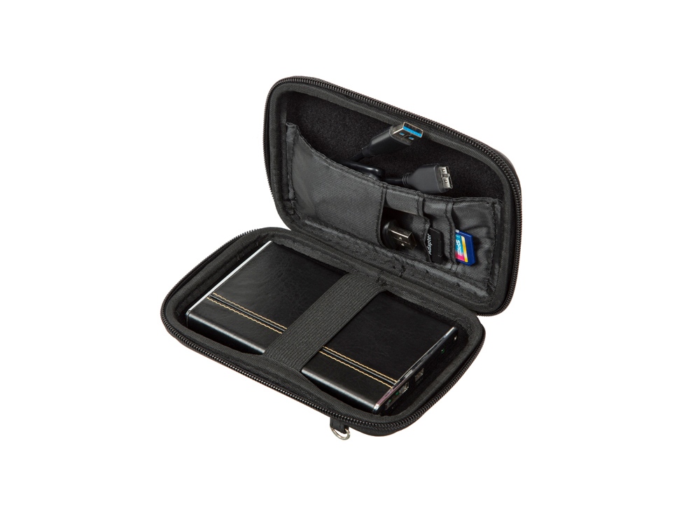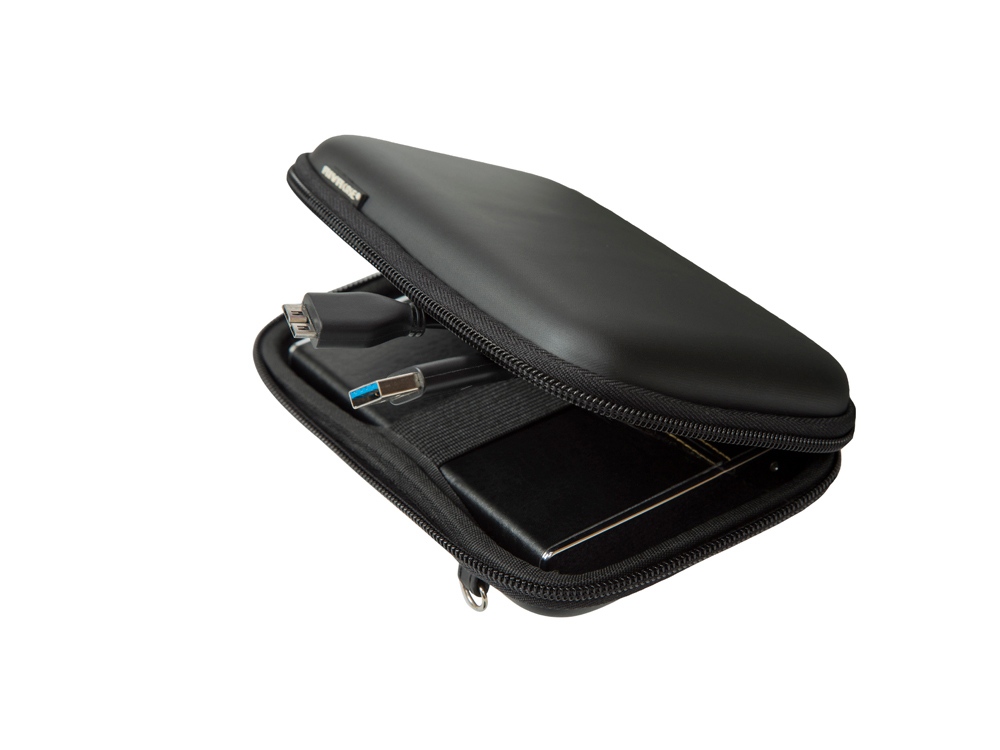 Чехол для внешнего жесткого диска (HDD) или GPS. • Подходит для большинства 2.5 HDD или 5.3 GPS • Чехол создан из высококачественного материала EVA, он надежно защищает от внешних воздействий, случайных ударов и царапин, а также от пыли и влаги. • Предусмотрена возможность крепления на поясном ремне. • В комплекте ремень для ношения чехла на плече или на шее. • Устройство надежно крепится внутри чехла специальной фиксирующей лентой, кроме того предусмотрены дополнительные внутренние карманы для кабеля, карт памяти и аксессуаров. • Двойная застежка молния для удобного доступа к устройству.