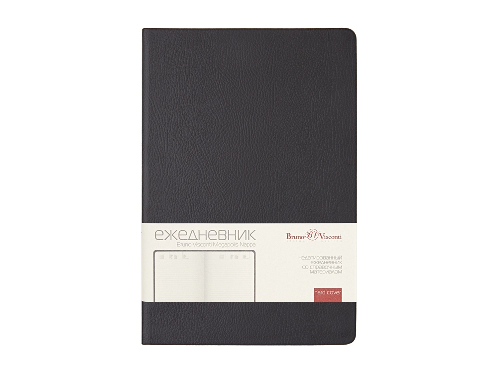 Ежедневник формата А5 Megapolis Nappa ТМ Bruno Visconti — для тех, кто предпочитает утилитарные ежедневники с яркими элементами. Двойное ляссе, окрашенный обрез и фактурная искусственная кожа твердой обложки придают этому ежедневнику привлекательности и благородства одновременно. Блок произведен из бежевой бумаги плотностью 70 г/кв.м и помимо раздела для планирования содержит справочную информацию