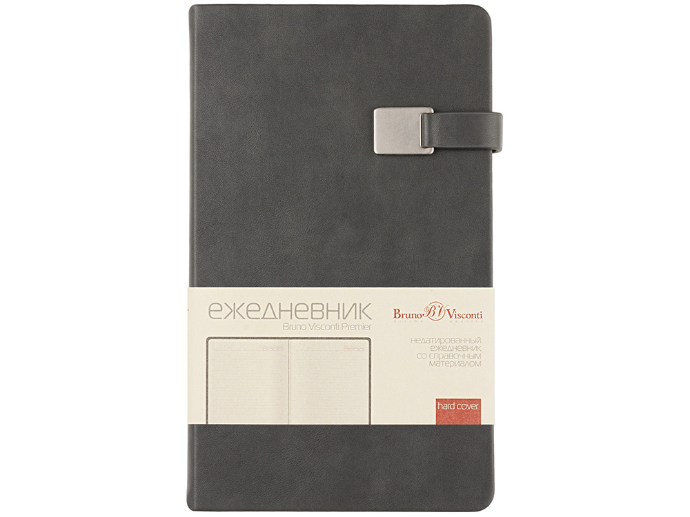 Недатированный ежедневник Premier формата А5 (125х208 мм) от Bruno Visconti - удобный и функциональный в эксплуатации. Твердую обложку из высококачественной искусственной кожи дополняет металлический хлястик на магните. Ляссе в цвет обложки позволяет быстро найти нужную страницу. Блок в 272 страницы произведен из бежевой бумаги плотностью 70 г/кв.м и имеет раздел справочной информации на 19 страницах. Для удобства навигации все углы блока перфорированы, имеют скруглённую форму.