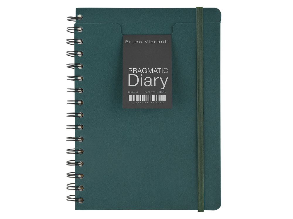 Сочетание удобства, простоты и яркого дизайнерского решения легли в основу создания недатированного ежедневника формата А5 Pragmatic от Bruno Visconti. Открытый гребень позволяет переворачивать страницы на 360 градусов, держать его открытым на столе, комфортно вести записи. Широкая резинка несет в себе как функциональное значение – не позволяет ежедневнику раскрываться и может служить закладкой, так и как элемент дизайнерского решения. Обложка из плотного картона, окрашенного в массе, гибкая по своей конструкции и имеет дополнительную функциональную возможность - хранить визитки, записки благодаря внешнему карману. Блок содержит 256 страниц, изготовленных из бежевой бумаги плотностью 80 г/кв.м Для современных деловых людей, ценящих время, комфорт и индивидуальность.