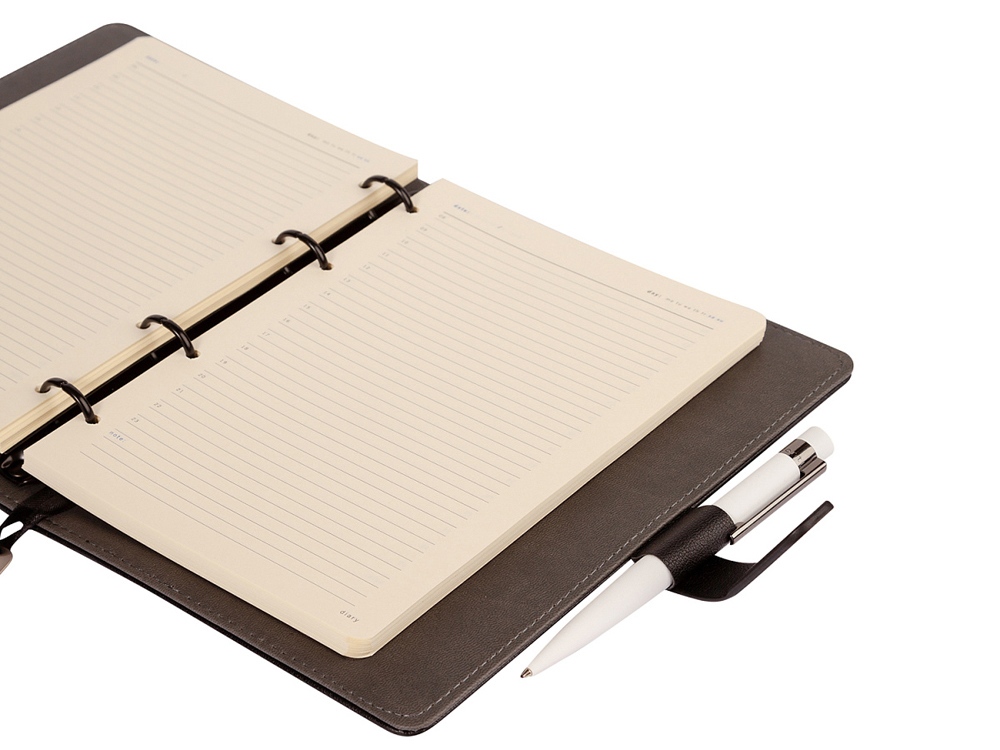 Недатированный ежедневник Toscana от Bruno Visconti на кольцах в твердом переплете – элегантный деловой аксессуар, подчеркивающий статус владельца с продуманным до мелочей функционалом: поролонированная обложка из высококачественной экокожи с декоративной нитью по периметру в тон ежедневника; бархатистая отделка, вырубка под пластиковые карты и визитки на внутренней стороне обложки; магнитный хлястик и петля для ручки; скругленные углы блока и обложки; ляссе с шильдиком для удобства навигации. Внутренний блок изготовлен из бумаги бежевого цвета и плотностью 70 г/кв.м и содержит 272 страницы, в т.ч. страницу для персональных данных, 17 страниц справочной информации.