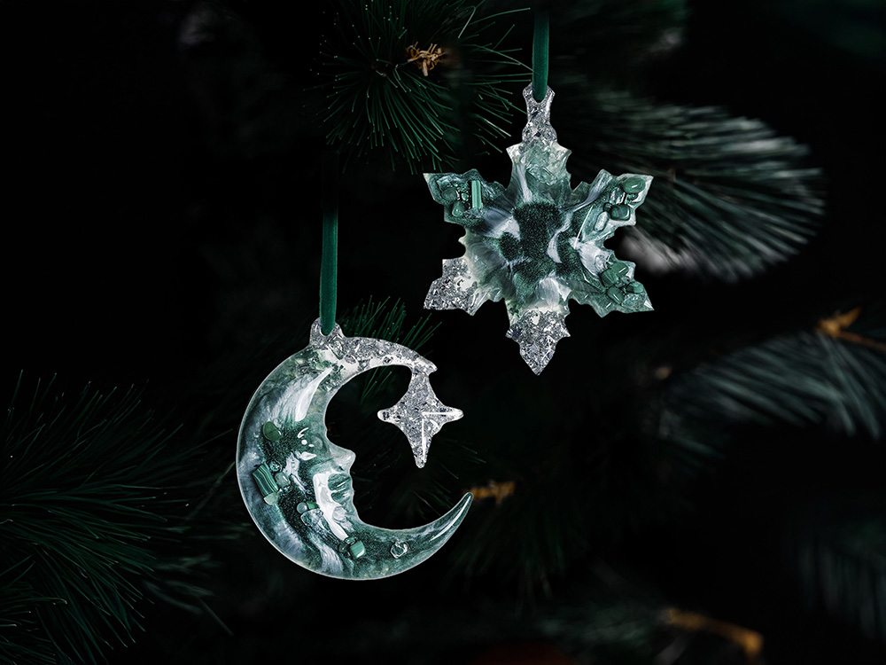 Елочные игрушки (Полумесяц+Снежинка) Авантюрин зеленый купить оптом и в розницу с нанесением логотипа в Уфе