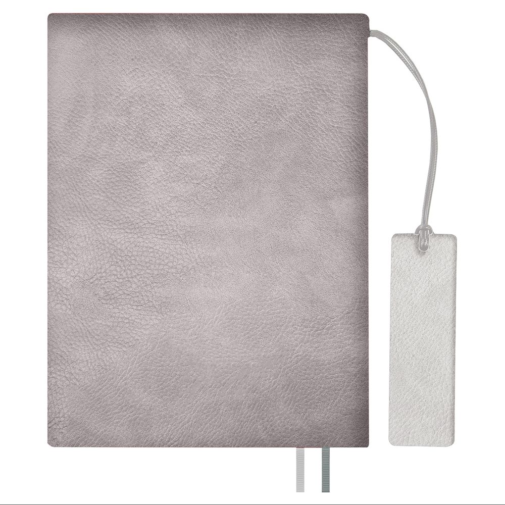 Ежедневник с гибкой обложкой и закладкой из искусственной кожи, дополнен капталом и двойным ляссе.