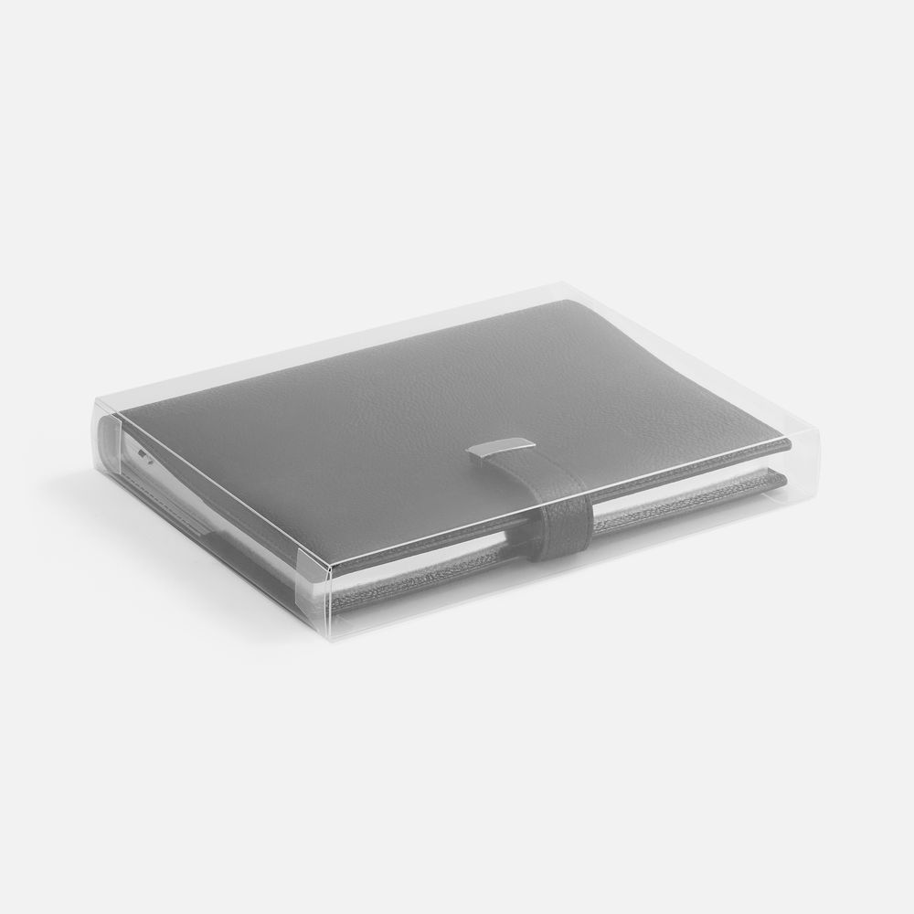 Ежедневник в мягком переплете со съёмная обложкой, дополнен застёжкой-хлястиком  с металлическим шильдом на кнопке, двойным ляссе и капталом.