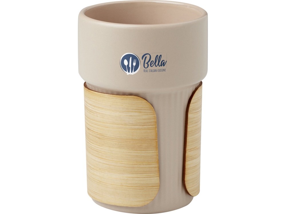 Fika стакан 340 мл с бамбуковым чехлом - бежевый овсяный купить оптом и в розницу с нанесением логотипа в Уфе