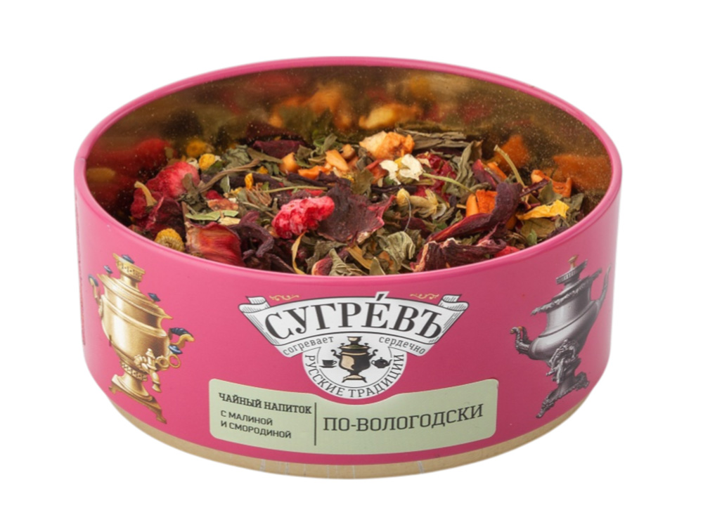 Чайный набор ПО-ВОЛОГОДСКИ — превосходный и запоминающийся подарок на все случаи жизни. Он состоит из уникального купажа фруктово-травяного чайного напитка и 100% натуральной леденцовой карамели со вкусом малины. Чайный напиток ПО-ВОЛОГОДСКИ сделан на основе купажа натуральных трав и фруктов. Это лёгкий приятный напиток с освежающей кислинкой, которую дают малина, мята и яблоко с небольшим добавлением гибискуса. Такой чай особенно приятно пить в тёплое время года или в душных помещениях зимой. Состав: - Чайный напиток по-вологодски: каркаде, рябина черноплодная, мята, лист малтны, лист смородины, календула, вишня сушеная. - Карамель леденцовая со вкусом малины: сахар, патока, вода, регуляторы кислотности (лимонная кислота, молочная кислота), ароматизаторы идентичные натуральным, краситель: концентрат сладкого картофеля, редиса и яблока.
