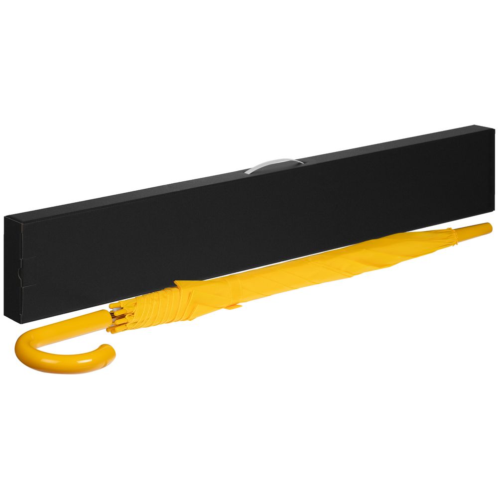 Самосборная коробка для зонта-трости со вставной пластиковой ручкой.