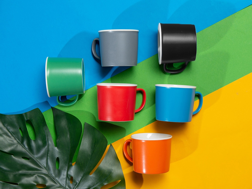 Матовая кружка Nancy 360 мл цветная снаружи, белая внутри, желтый купить оптом и в розницу с нанесением логотипа в Уфе