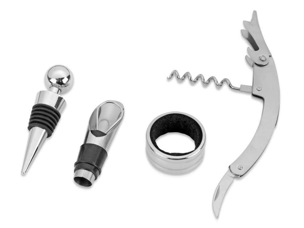 Комплектность каплеуловитель в форме кольца d4 х 1,9 см, аэратор 2,2 х 1,8 х 7,5 см, пробка для вина d2,1 х 9,1 см, штопор 11 х 2,5 х 1,1