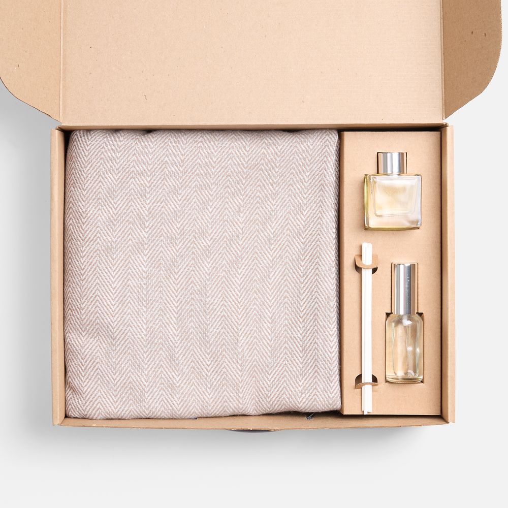 В этом элегантном комплекте — нежный плед с изящным рисунком и стильный ароматический диффузор с палочками, создающий атмосферу уюта и гармонии в любом пространстве. Такой набор — это не просто продукт, а полноценное эмоциональное впечатление: тепло, комфорт и расслабление в одном флаконе. Он идеально подходит для подарков, корпоративных сувениров и сезонных акций.
