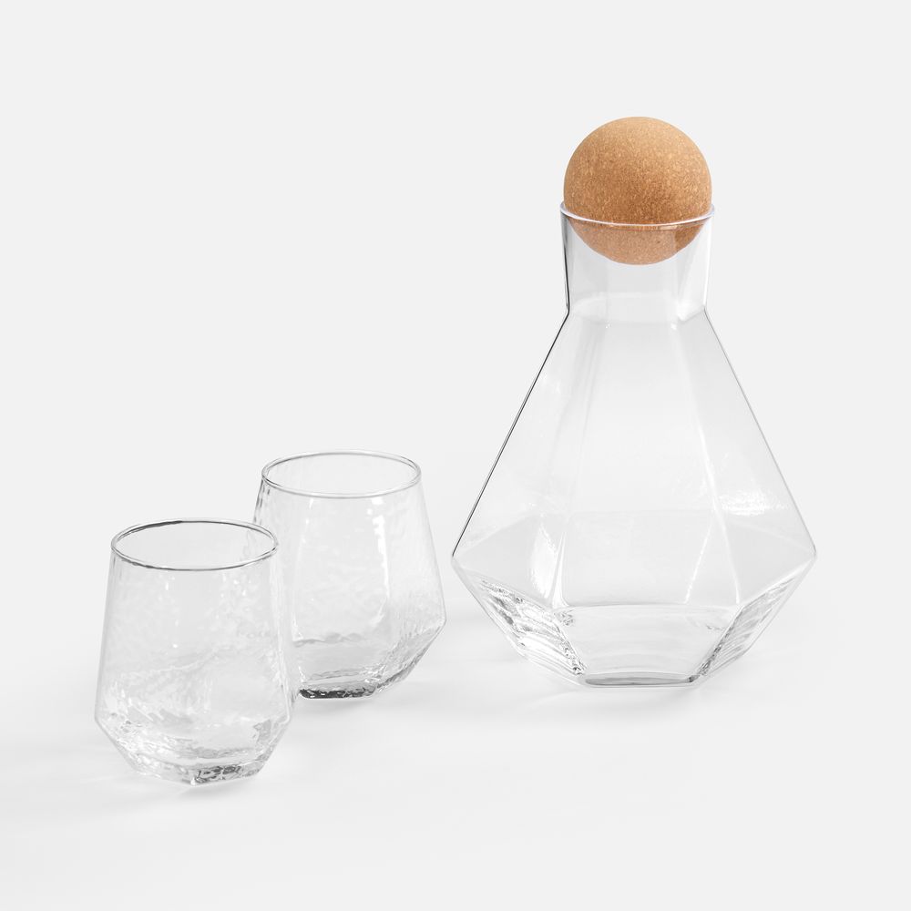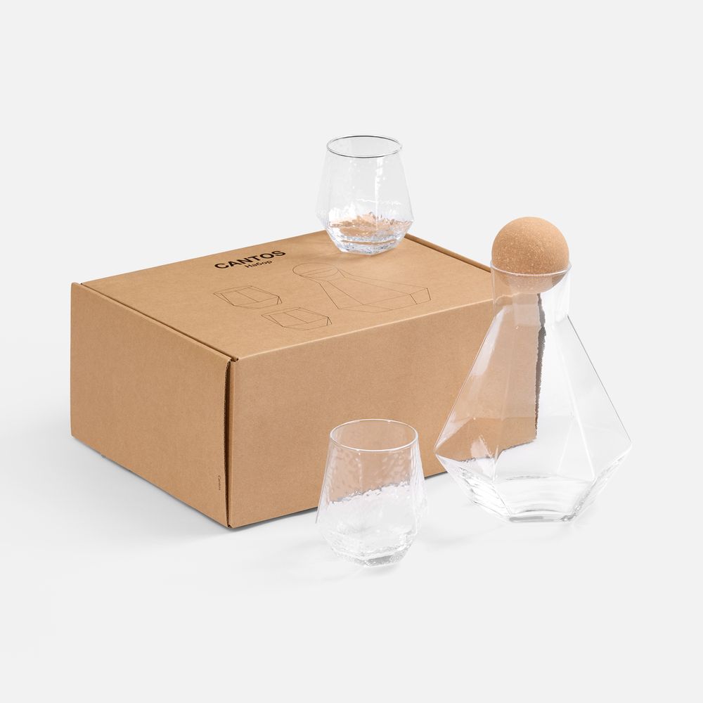 | Материал |  графин - боросиликатное стекло; стаканы - стекло, закаленное; крышка-шар - пробка; коробка - картон |