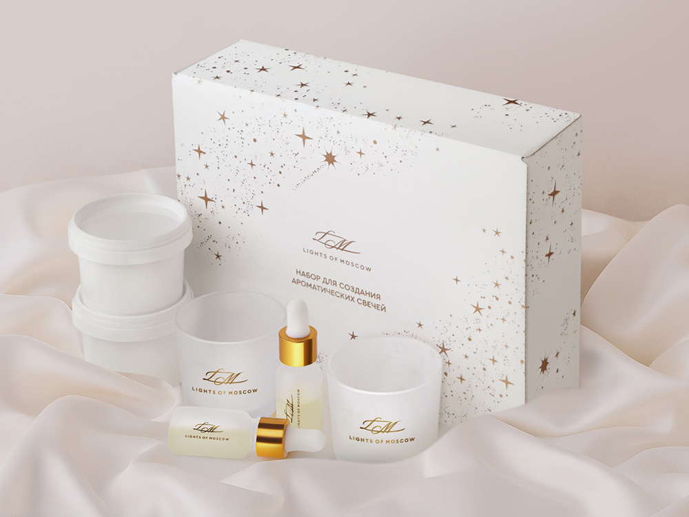 Уникальный набор для изготовления ароматических свечей станет приятным подарком и погрузит в увлекательный процесс. Набор выполнен в подарочной коробке с ложементом, в него входят все необходимые компоненты и подробная инструкция. Откройте для себя удивительный мир ароматов с Lights of Moscow! Вы сможете создать две невероятные композиции, которые точно понравятся Вам и Вашим близким! Условия хранения: — Свечи: +18…+24 °C, вдали от источников тепла, сквозняков и прямых солнечных лучей. — Рекомендуемая влажность — не более 50%. — Избегайте длительного воздействия яркого света. В комплекте: Подарочная брендированная коробка с ложементом - 1 шт. Стакан стеклянный матовый с тиснением логотипа LM 100 мл - 2 шт. Контейнер с соевым воском – 2 шт. Флакон стеклянный матовый c тиснением логотипа LM с ароматической отдушкой – 2 шт. Деревянный фитиль с держателем – 1 шт. Хлопковый фитиль с держателем - 1 шт. Наклейка для крепления фитиля - 2 шт. Палочка для перемешивания - 2 шт. Салфетка - 1 шт. Перчатка - 1 шт. Открытка - 1 шт. Инструкция по изготовлению ароматических свечей – 1 шт.