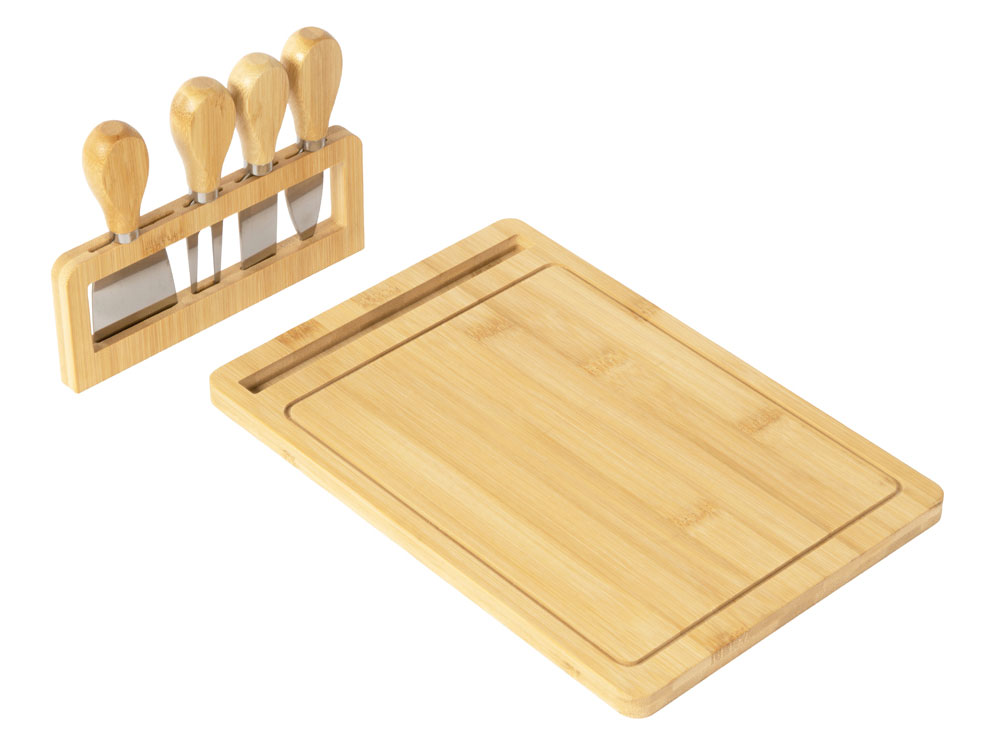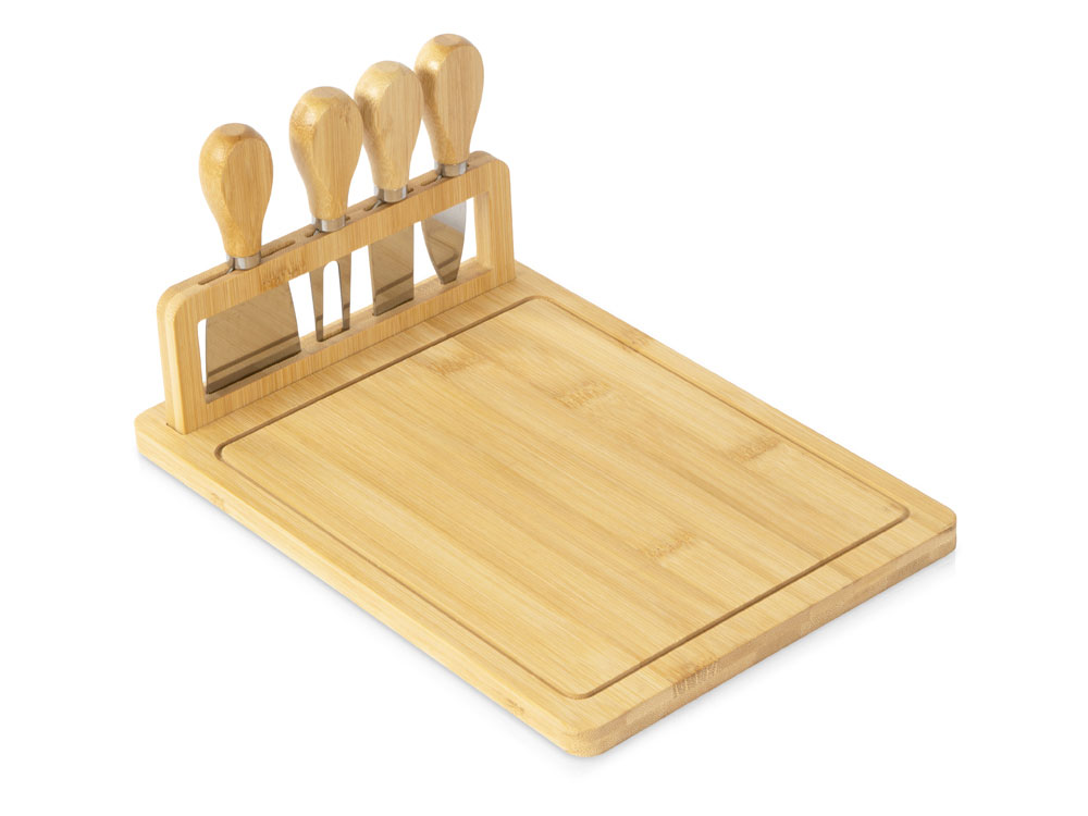 Набор для сыра из серии Bamboo collection состоит из доски, съемной подставки для ножей и самих ножей и предназначен для нарезки и подачи сыра разных сортов. Листовидный нож или, как его еще называют, нож для пармезана, предназначен для твердых сортов сыра, которые практически невозможно порезать, скорее их нужно колоть. Нож-стамеска предназначен для очень мягких сыров, а широкая лопатка — для мягких и полутвердых. Двузубая вилка используется для сервировки, а также помогает при нарезании. Благодаря тому, что подставка съемная, доску можно перевернуть и использовать обратную сторону с гладкой поверхностью для более удобного нарезания продуктов, а также в разобранном виде доску удобнее хранить. • 3 ножа для разных сортов сыра • вилка для сервировки • съемная подставка для приборов