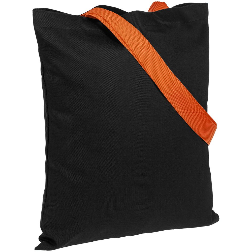 • Холщовая сумка BrighTone, черная с оранжевыми ручками