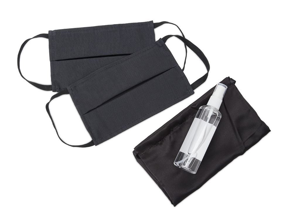 Набор средств индивидуальной защиты в сатиновом мешочке Protect Plus, черный купить оптом и в розницу с нанесением логотипа в Уфе