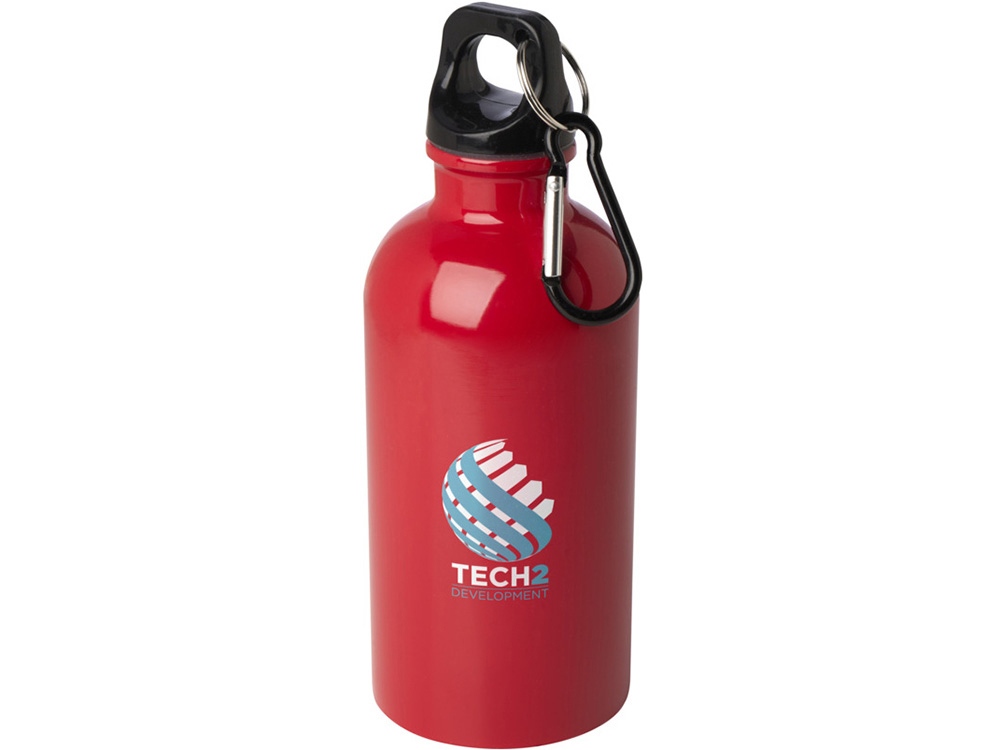 Одностенная бутылка для воды с карабином Oregon, изготовленная из нержавеющей стали, сертифицированной по стандарту RCS, объемом 400 мл - Красный купить оптом и в розницу с нанесением логотипа в Уфе