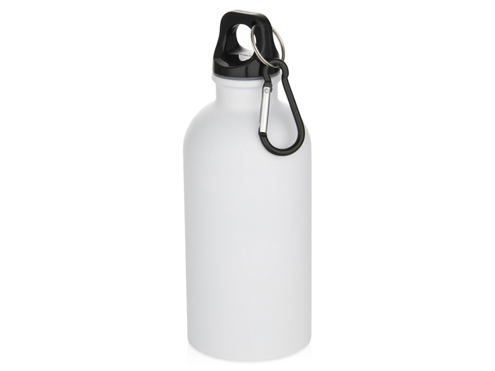 Oregon одностенная бутылка для воды с карабином, изготовленная из нержавеющей стали, сертифицированной по стандарту RCS, объемом 400 мл - Белый купить оптом и в розницу с нанесением логотипа в Уфе