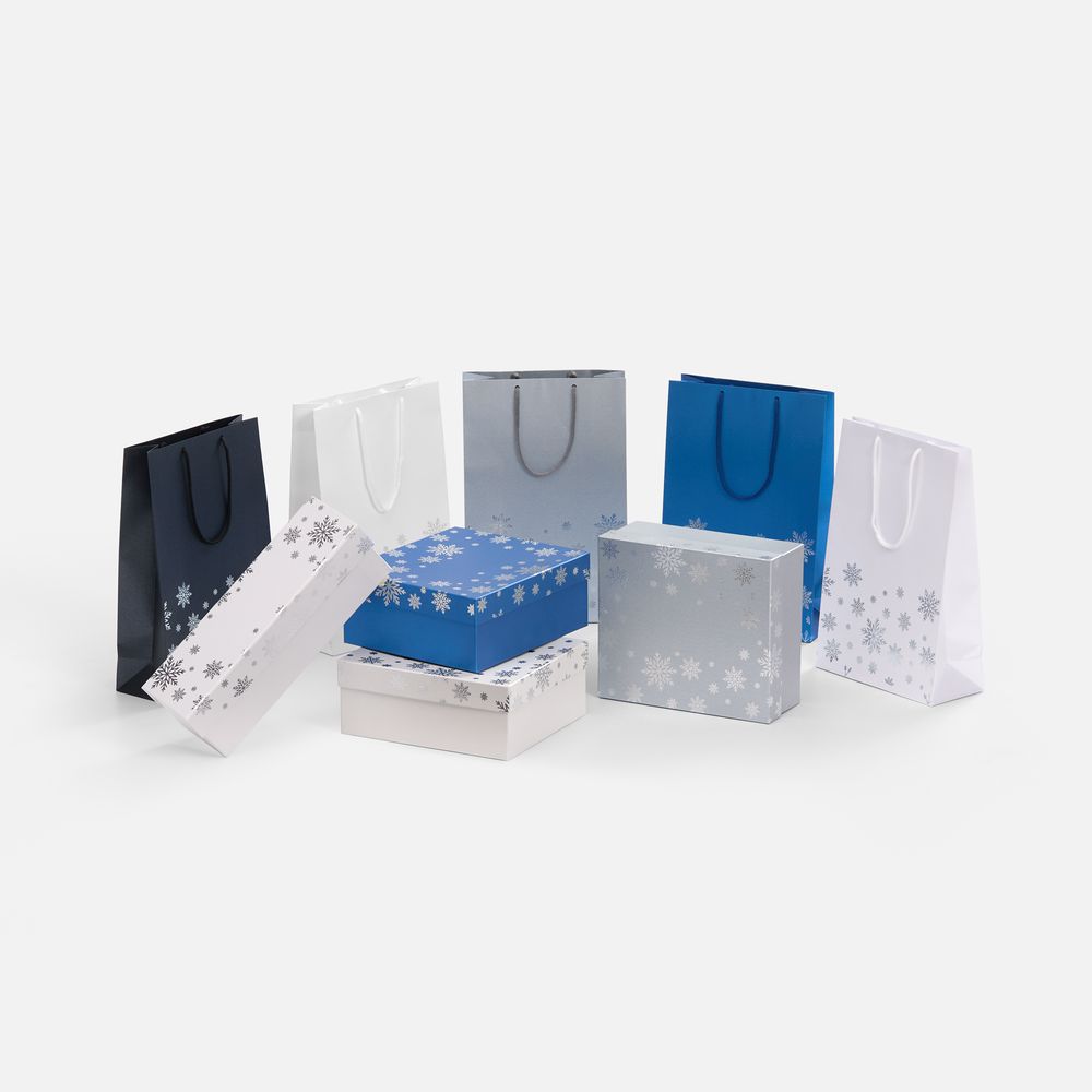 Пакет из бумаги Galaxy Metallic (TPG) плотностью 120 г/м² с тиснением серебристой фольгой.Выдерживает вес до 2 кг.