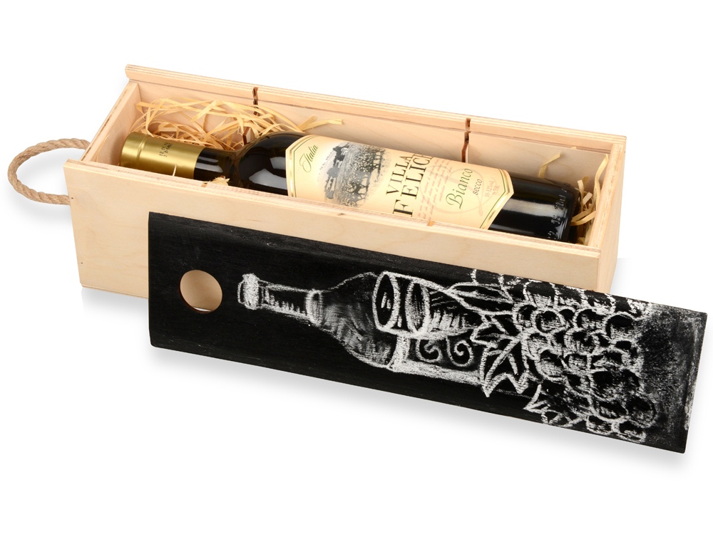 Пенал на 1 бутылку с грифельной крышкой, натуральный купить оптом и в розницу с нанесением логотипа в Уфе
