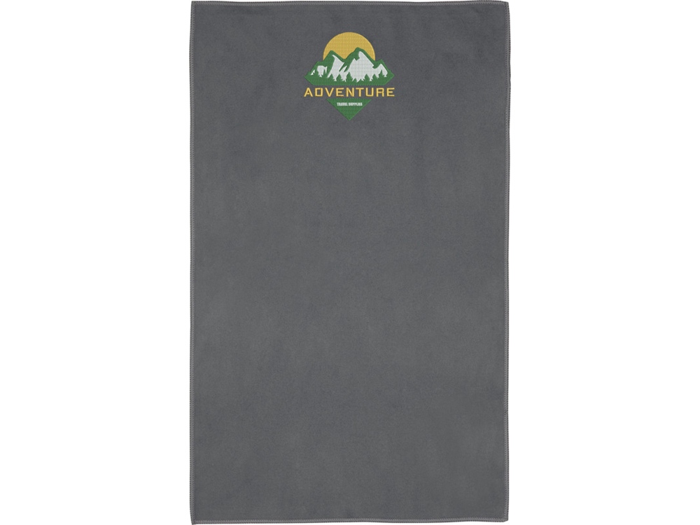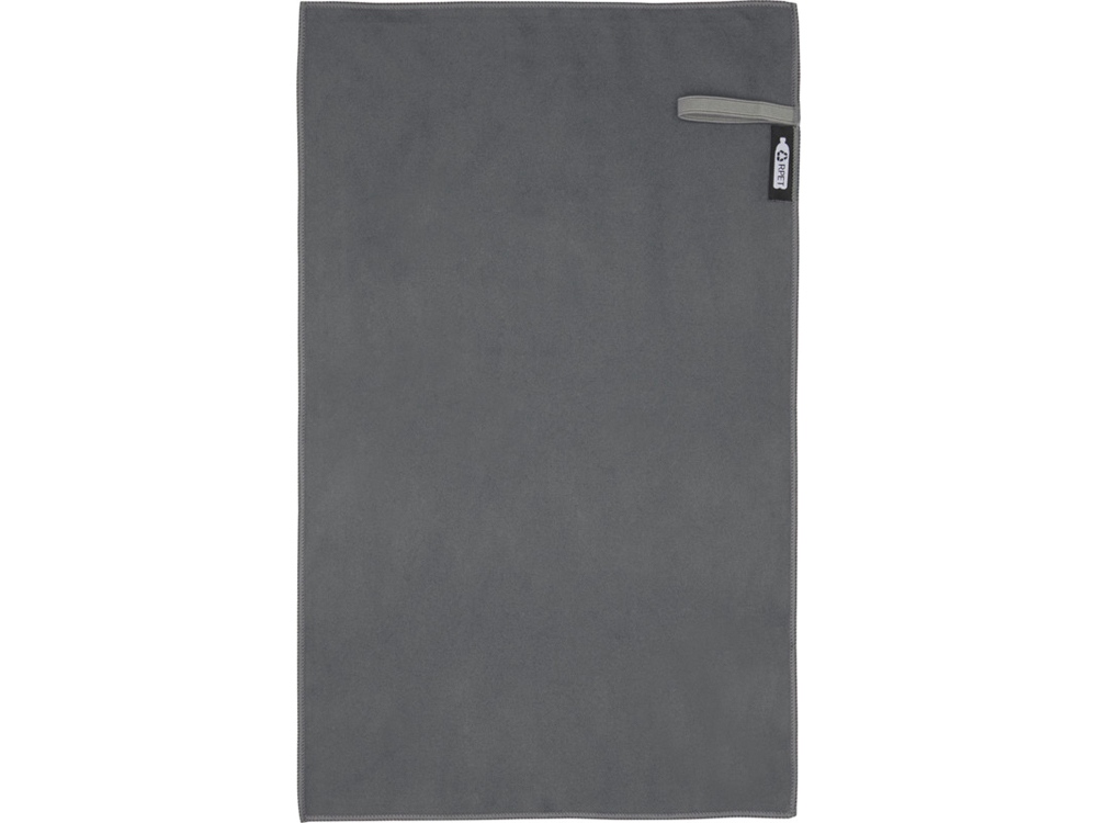 Спортивное полотенце Pieter очень хорошо впитывает влагу, легкое, быстро сохнет, а ткань прочная и очень мягкая. Когда полотенце сложено и закреплено резинкой, оно уменьшается до небольшого размера, поэтому его удобно брать с собой в тренажерный зал, бассейн, на пешую прогулку или в поход. Полотенце размером 50 х 30 см изготовлено из 90 % переработанного полиэстера GRS и 10 % нейлона. Его можно стирать в стиральной машине при температуре 40 °C. В комплект поставки входит мешок для хранения (15,5 x 10 см), изготовленный из переработанного ПЭТ-пластика, обеспечивающий большую площадь для печати логотипа. 10% Нейлон, 90% GRS certified recycled polyester, 200 g/m2.