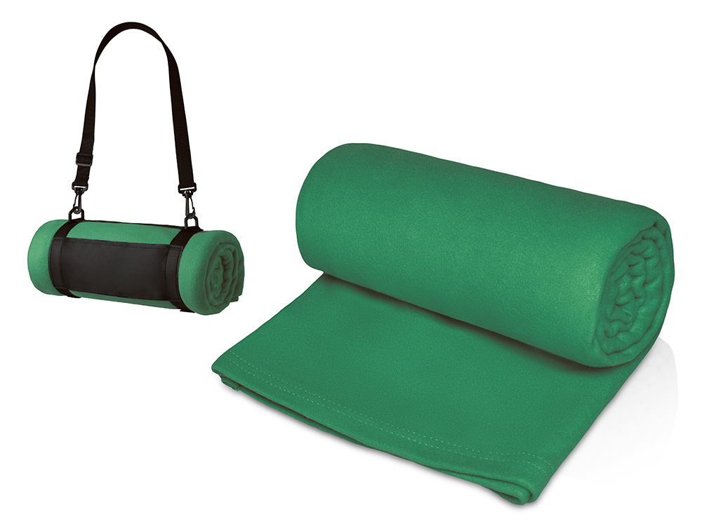 Плед Нежность с плечевым ремнем, зеленый купить оптом и в розницу с нанесением логотипа в Уфе