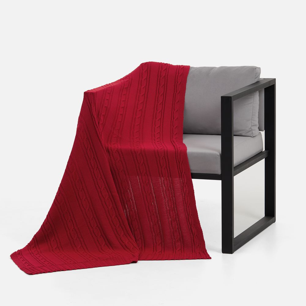 Тонкое переплетение вертикальных кос-жгутов создает благородную фактуру, где простота линий встречается с изысканной текстурой. Плед из мягкого акрила сохраняет тепло, оставаясь удивительно легким и воздушным.