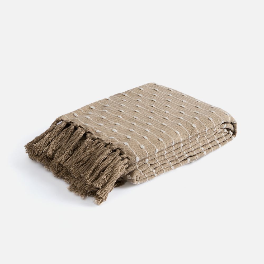 Фактурный узор в технике счетной вышивки, а также спокойные природные оттенки пледа Shimla создадут комфортное визуальное ощущение наряду с приятными тактильными ощущениями от натуральной основы пледа.