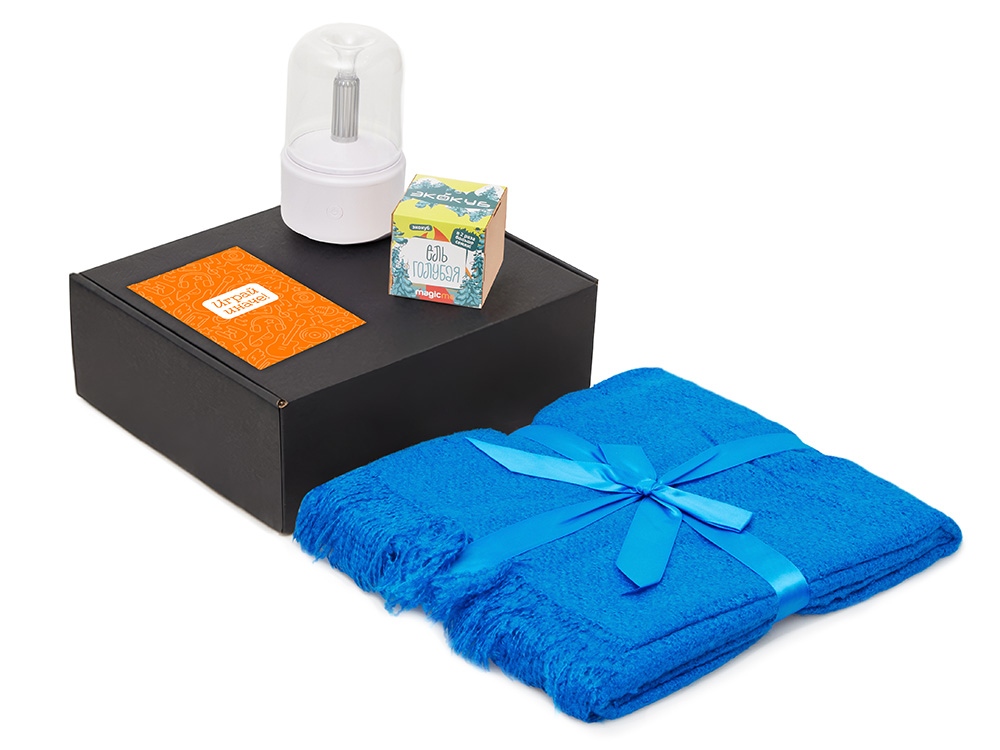 Материал товара плед - 100% акрил, увлажнитель-аромадиффузор - АБС палстик, поликарбонат, набор для выращивания - дерево, мешок - нетканый материал (спанбонд), коробка - картон