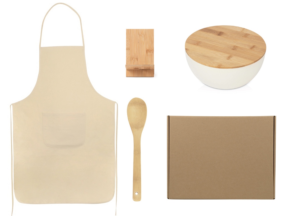 Классический фартук в нейтральном спокойном цвете регулируется на талии тонкими плотными завязками. Выполнен из 100% неокрашенного хлопка, поэтому в нем комфортно и не жарко находиться за плитой. Бамбуковая ложка не царапает стенки посуды, в которой готовится пища, не искажает вкус и легко отмывается мылом или средствами для мытья посуды. Круглый салатник с бамбуковой крышкой изготовлен на 80% из натуральных материалов. Он подходит для сервировки как лёгких салатов из свежих овощей, так и для более сытных и праздничных, а также фруктов или снеков. Наличие крышки удобно, когда накрыть на стол нужно немного заранее, например, до прихода гостей или на Новый год. Подставка для мобильного телефона позволит вам всегда держать телефон под рукой во время приготовления пищи. вы сможете смотреть фильмы, видеоуроки или общаться с друзьями, не отвлекаясь от готовки. Подставка выполнена из натурального бамбука, позволяя вашему логотипу привлечь максимум внимания.. - натуральные материалы; - не искажает вкус продуктов; - подарочная коробка уже в комплекте; - полезный мерч на 8 Марта. Салатник не стоит использовать в микроволновке.