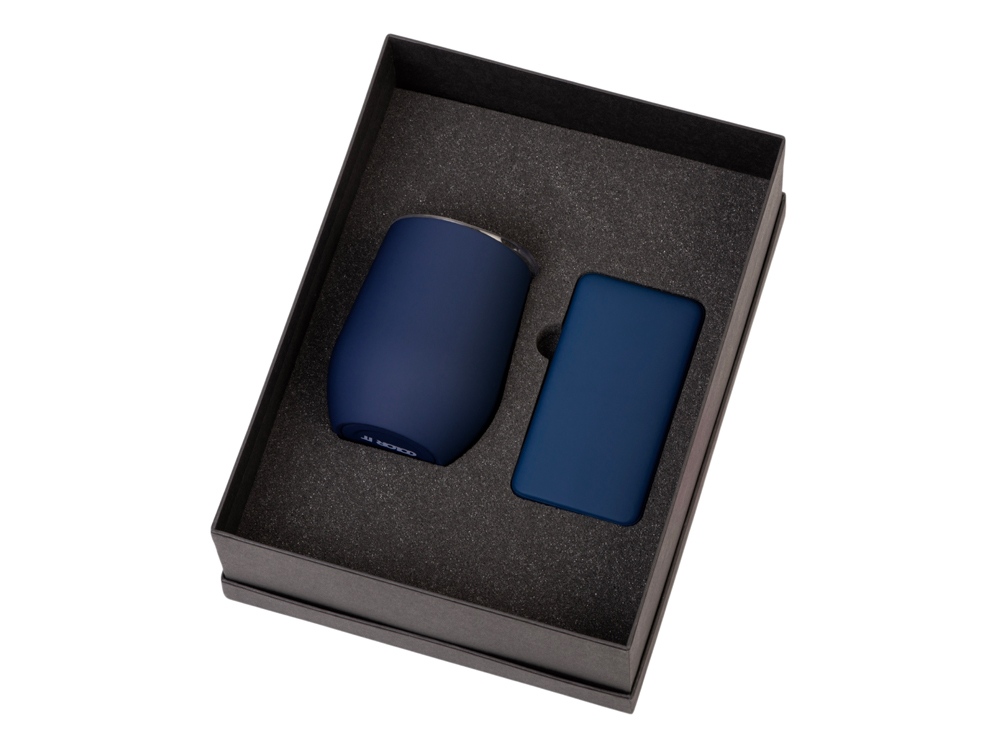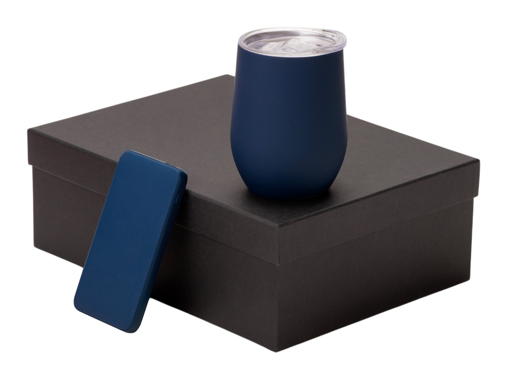Подарочный набор с термокружкой и повербанком С2, 10000 mAh, темно-синий