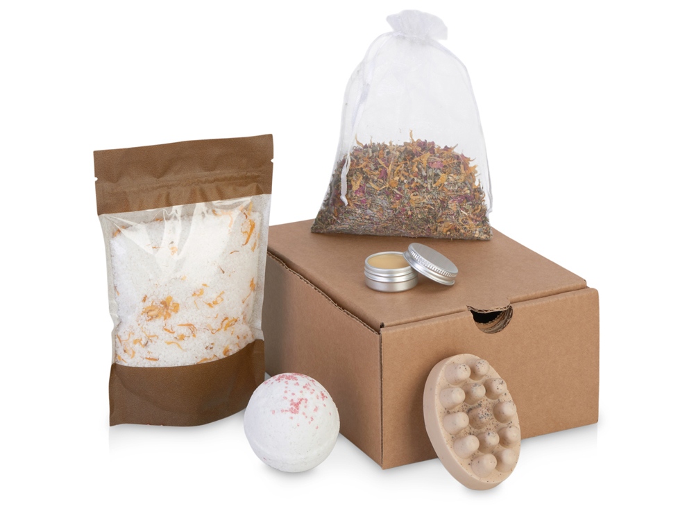 | Комплектность | соль для ванны, чайные травы в мешочке, бальзам для губ, массажное мыло с кофе, бомбочка для ванны |
