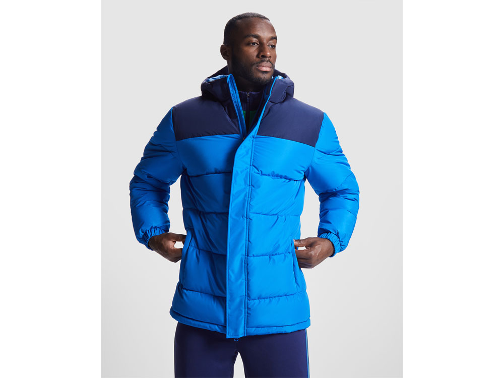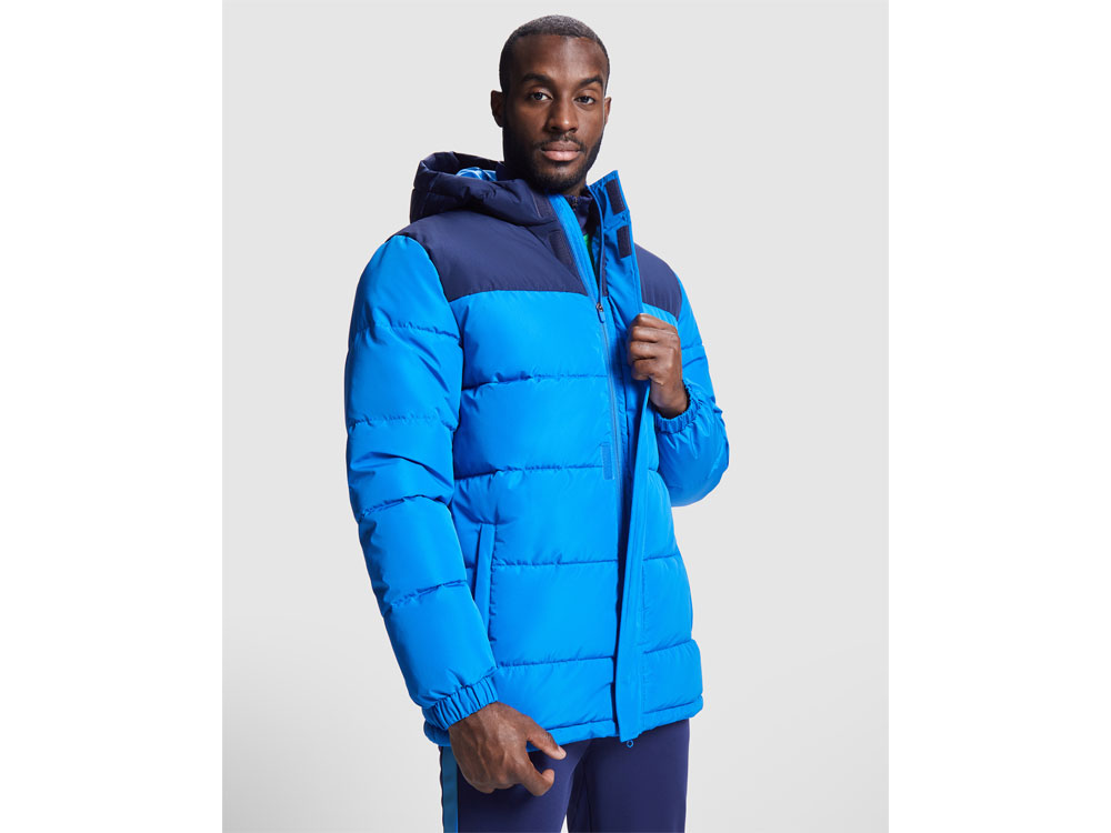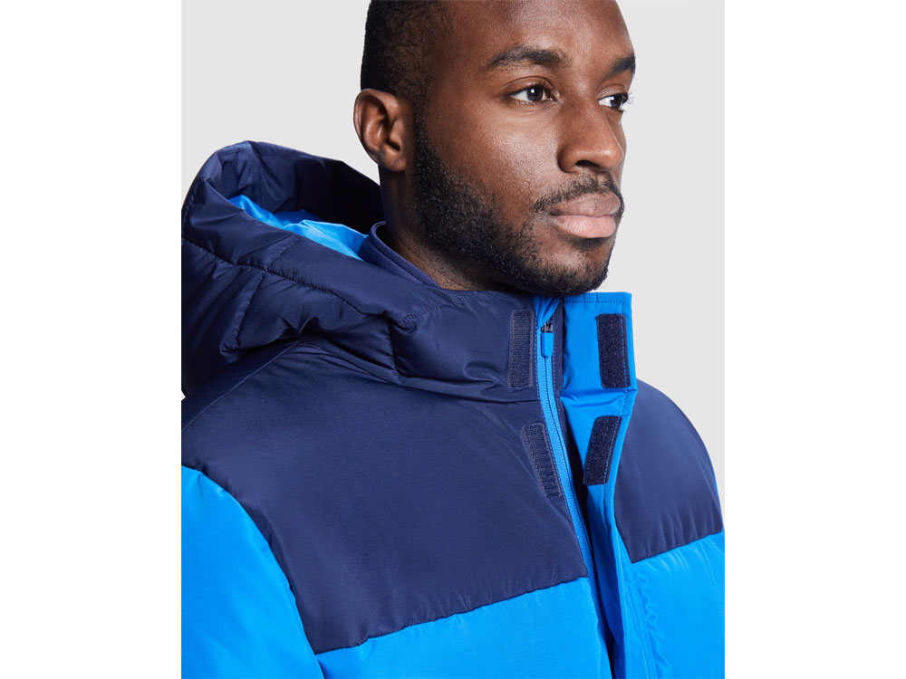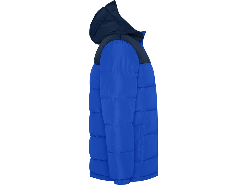 Утепленная куртка с капюшоном · передняя молния закрывается планкой · защита для подбородка · два боковых кармана на молнии · эластичный манжеты · специальный доступ для нанесения на спинке