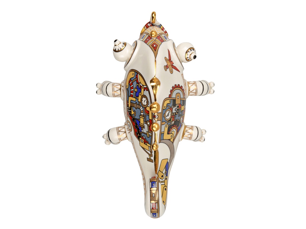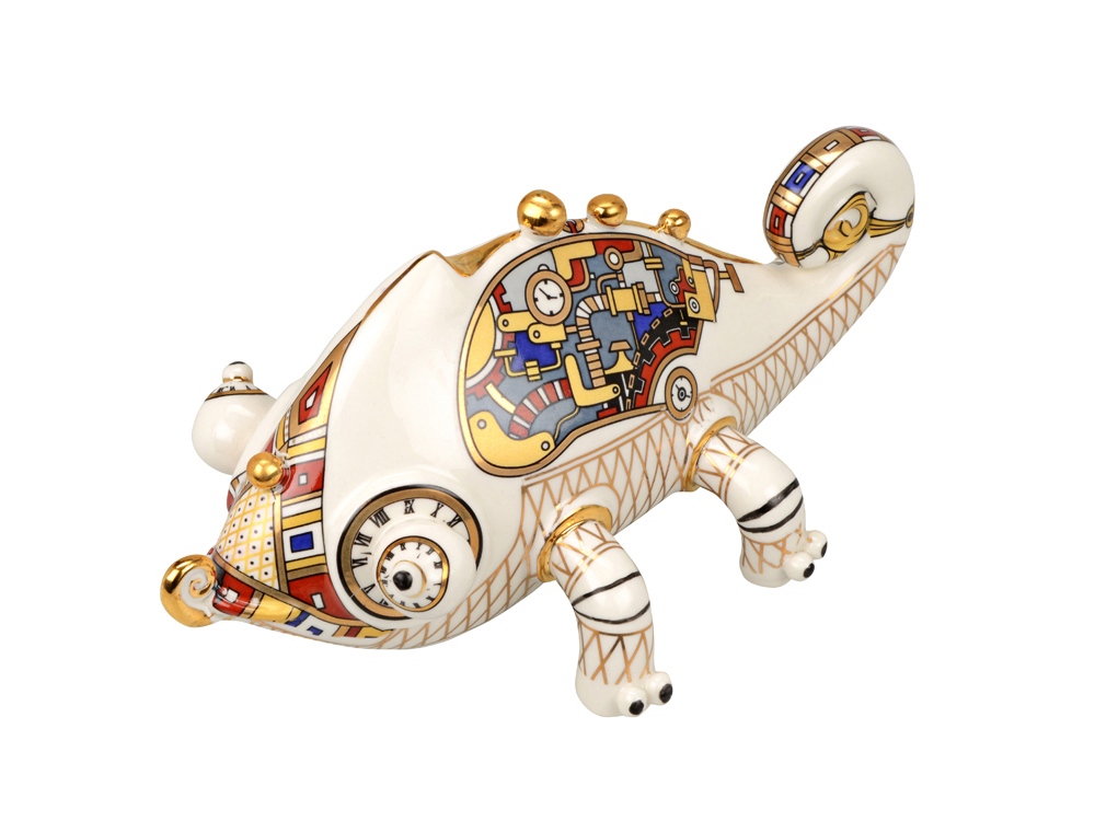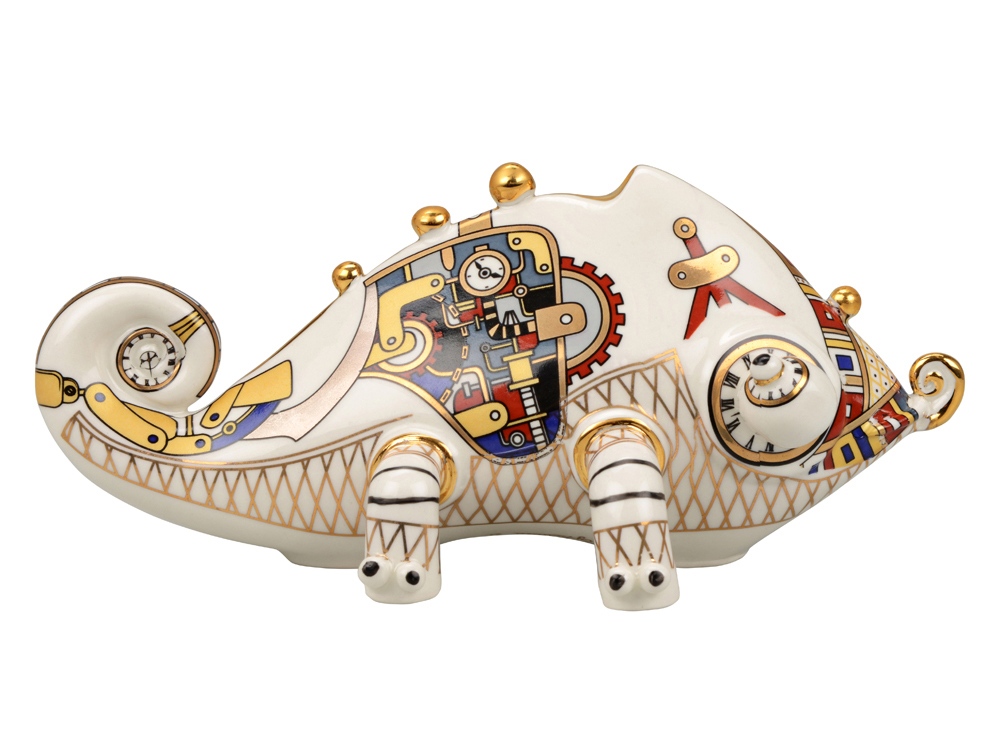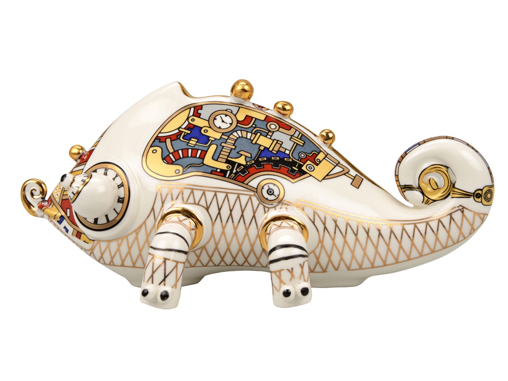 До символического значения хамелеона несложно догадаться. Хамелеон символизирует способность подстраиваться под любые жизненные обстоятельства и везде чувствовать себя своим. Скульптура Хамелеон” - это великолепный символический подарок с уникальной ручной росписью, выполненный в стиле стимпанк. Представьте себе мир, где паровые машины и другие ретро-технологии не исчезли, а достигли высочайшего развития. Так и выглядит стимпанк! Неповторимые формы, применение ручной работы необычного геометрического орнамента в комбинации с высокой техникой мазка дают изделиям Арт–Модерн керамики оригинальный колорит и притягательность, а небольшой объем производства и индивидуальная роспись делают изделия исключительными. Внимание! Данное изделие относится к категории повышенной хрупкости. Для обеспечения его целостности и безопасной транспортировки настоятельно рекомендуется использование обрешетки. Обрешеточная упаковка является обязательной при доставке, и компания Oasis не несёт ответственности за повреждения, возникшие в результате ненадлежащей упаковки или транспортировки без обрешетки.