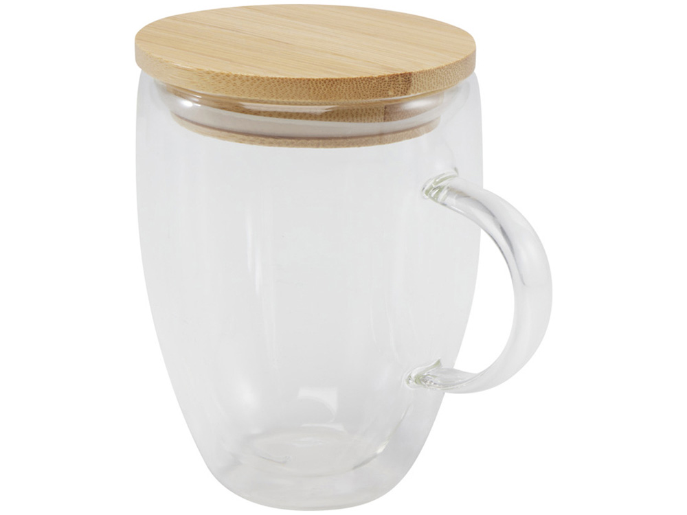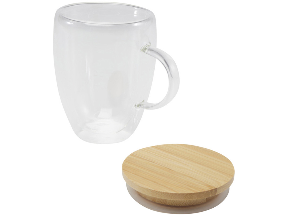 Стеклянная кружка Leona объемом 350 мл с бамбуковой крышкой - прозрачный