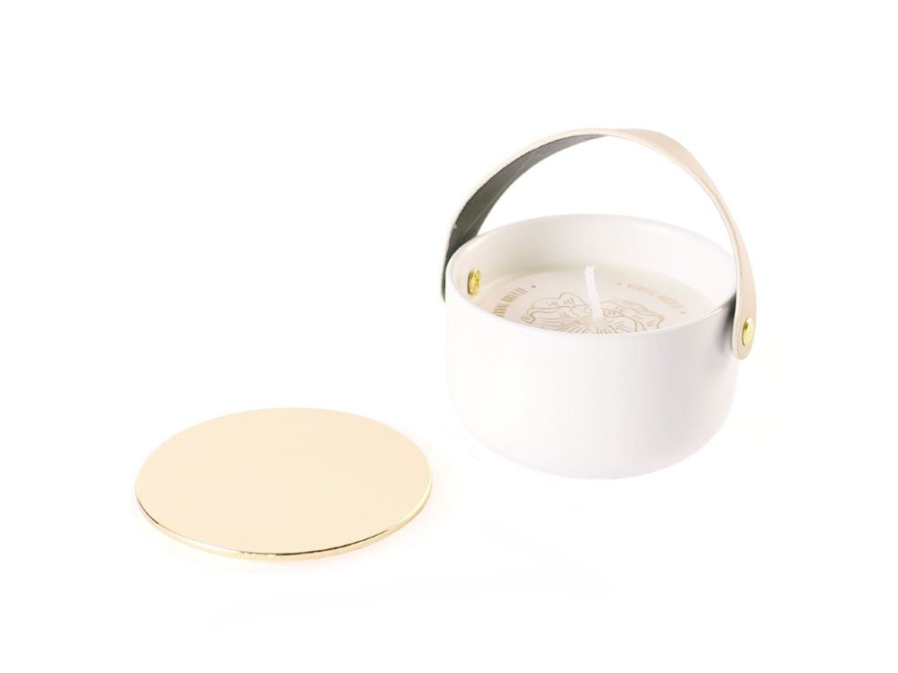 Материал товара высокотемпературный фарфор, металлическая крышка, ручка ПВХ, соевый воск