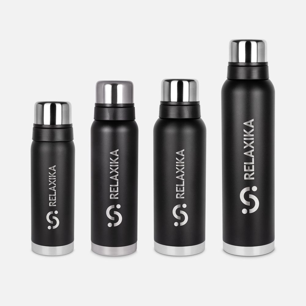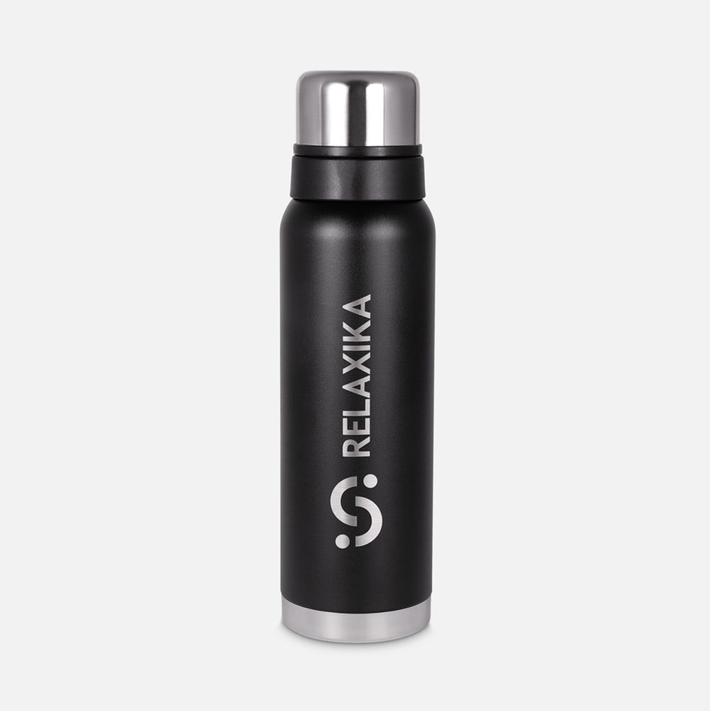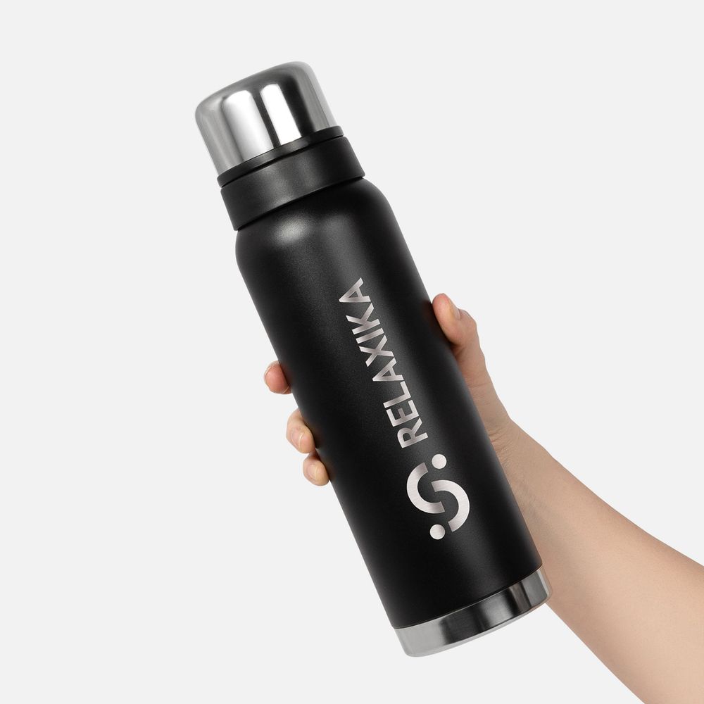Термос Relaxika 1000 со стикерпаком, черный купить оптом и в розницу с нанесением логотипа в Уфе
